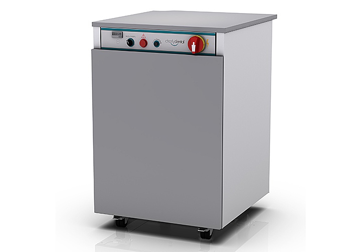 Funzionamento manuale o automatico. Facile da pulire con un sistema a binario per l'unità di aspirazione: facile accesso alla vasca e ai filtri. Facile da spostare grazie alle ruote. Dimensioni: 600x685x900 mm. Alimentazione elettrica: 220-230 V monofase.
